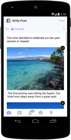 이러한 노력의 일환으로 10월 18일부터 개인이나 페이지에서 여러장의 사진을 모바일을 통해 업로드를 할 때 아래와 같은 추가기능을 사용하실 수 있습니다.